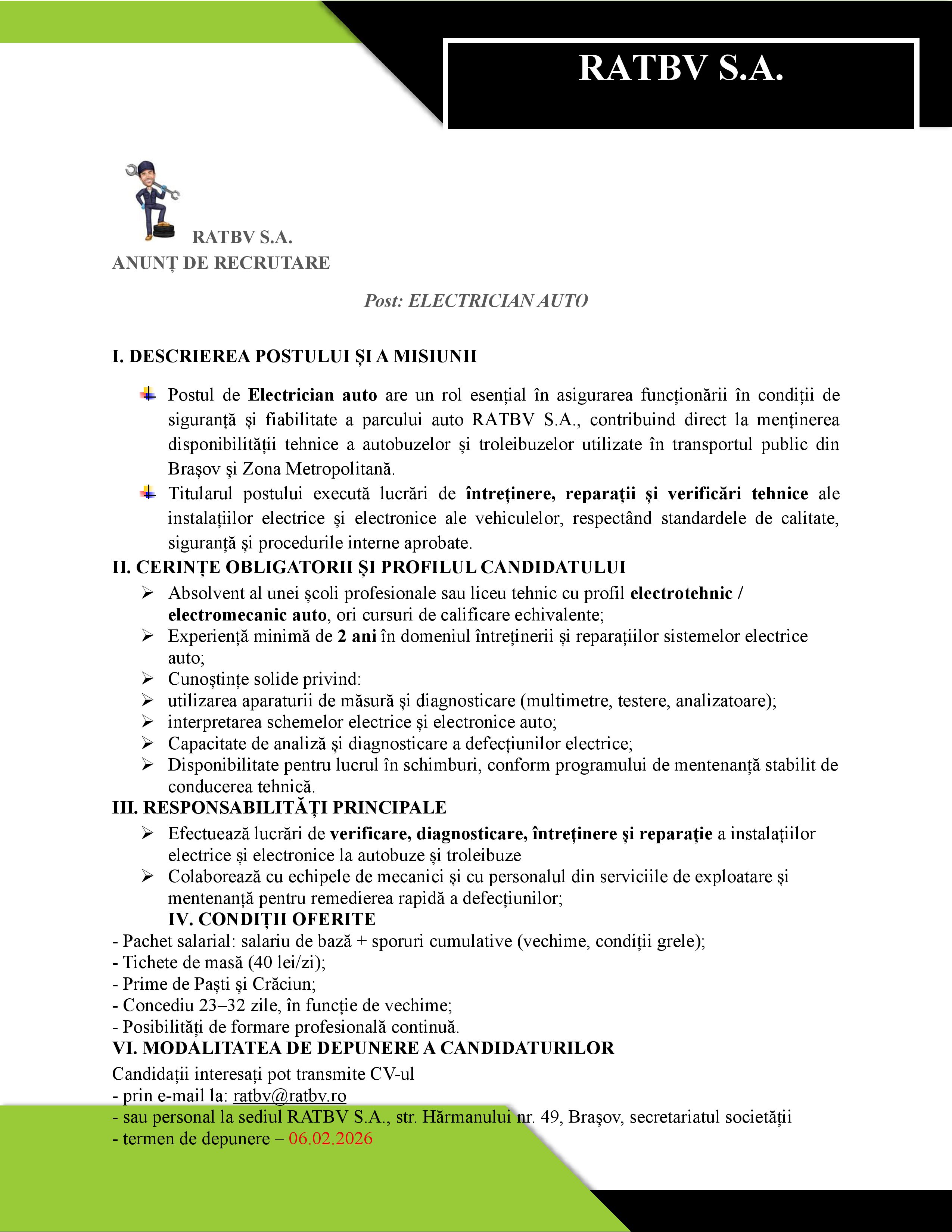 ANUNT SELECTIE ELECTRICIAN AUTO
